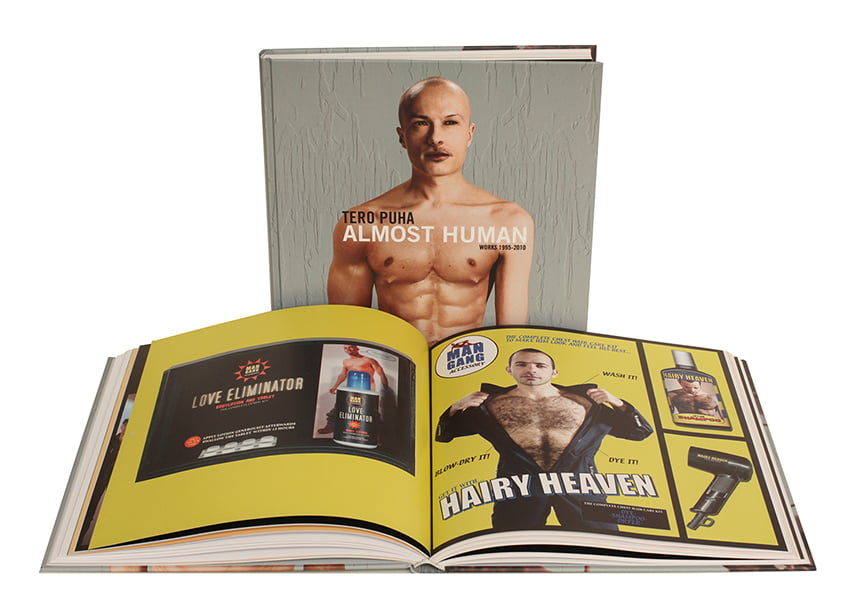 Almost Human – Works 1995–2010 (Inky Robot Media, 2011) is a compact publication that packages together the core aspects of Puha’s art by showing his work and featuring five articles by Finnish experts of contemporary art. The themes include the life of the modern individual, representation of gender, body image, socio-cultural constructions, identity, consumer behaviour and popular culture. If pop is your art, identity and religion, you have to take a closer look at this book.